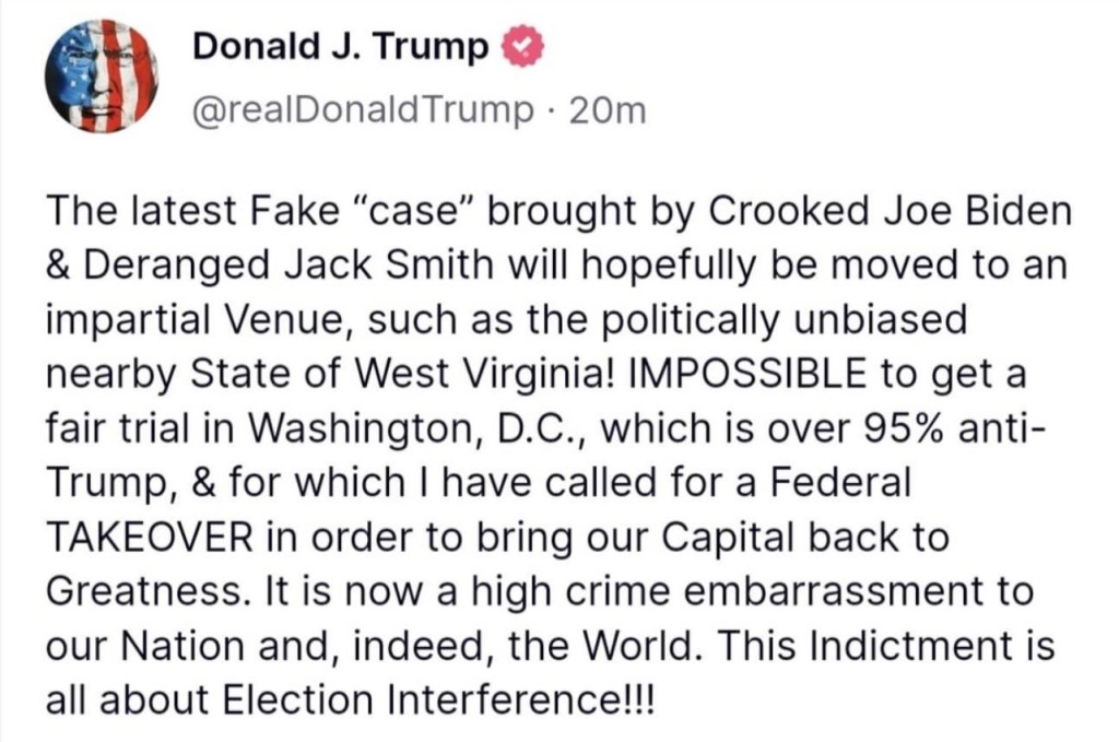 While the humor in the tweet may provoke laughter, the underlying issue at hand is far from a laughing matter. The attempted trial maneuver appears to be an effort by Trump to seek a more favorable venue for his legal proceedings, potentially raising concerns about the former President’s willingness to be held accountable for his actions.